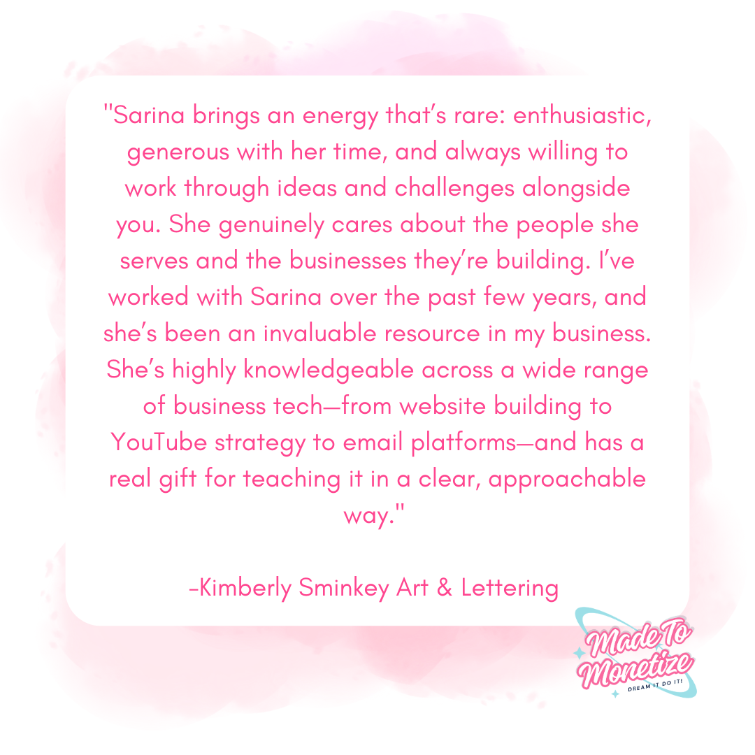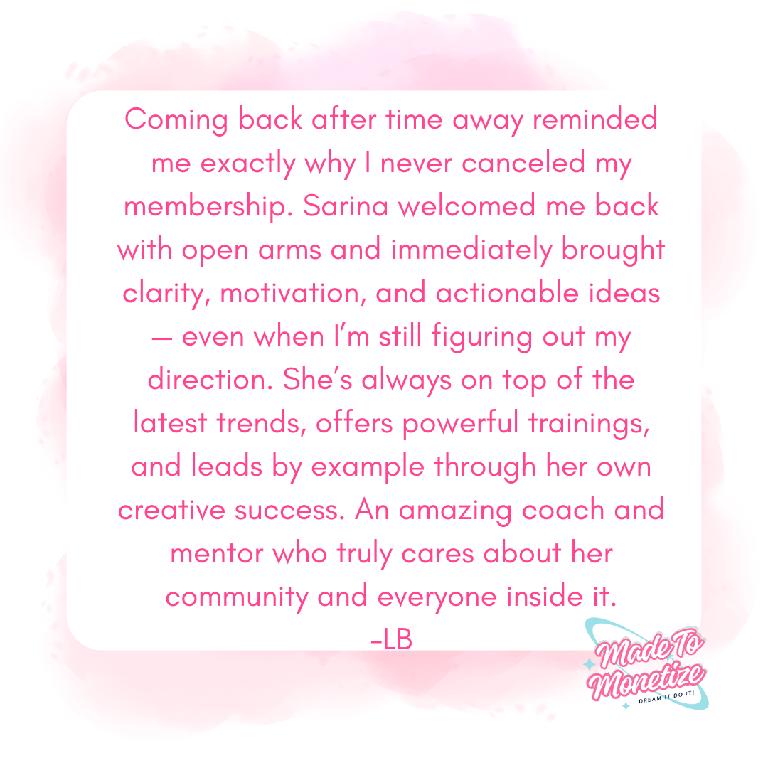 For over a decade I've been working with creatives to help them realize and monetize their products, courses, memberships and more. In early 2019 I decided to take the leap into the online coaching space. I remember being so scared and so unsure of myself, but after a couple of months trying to figure out how to serve my community, I found my groove and each year has been a pivotal moment in my business.Â